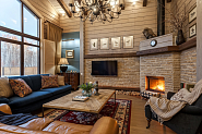Уютные акценты – камин, мягкая мебель, ковры, теплый текстиль.
